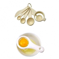 Praktikus mini konyhai szettTojásszétválasztóval, mini késsel és mérőkanalakkalAnyaga: műanyag